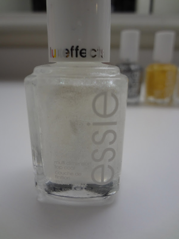 Overall, I like Essie Luxeffects. They offer simple one step way to dress up any polish color. Some feels more textured than others (ACut Above and Set in Stone) but they do all dry in decent time and offer protection of regular top coats plus the extra "sparkles." My favourite is Shine of the Time: it's the multi color opalescent one with flaky texture.